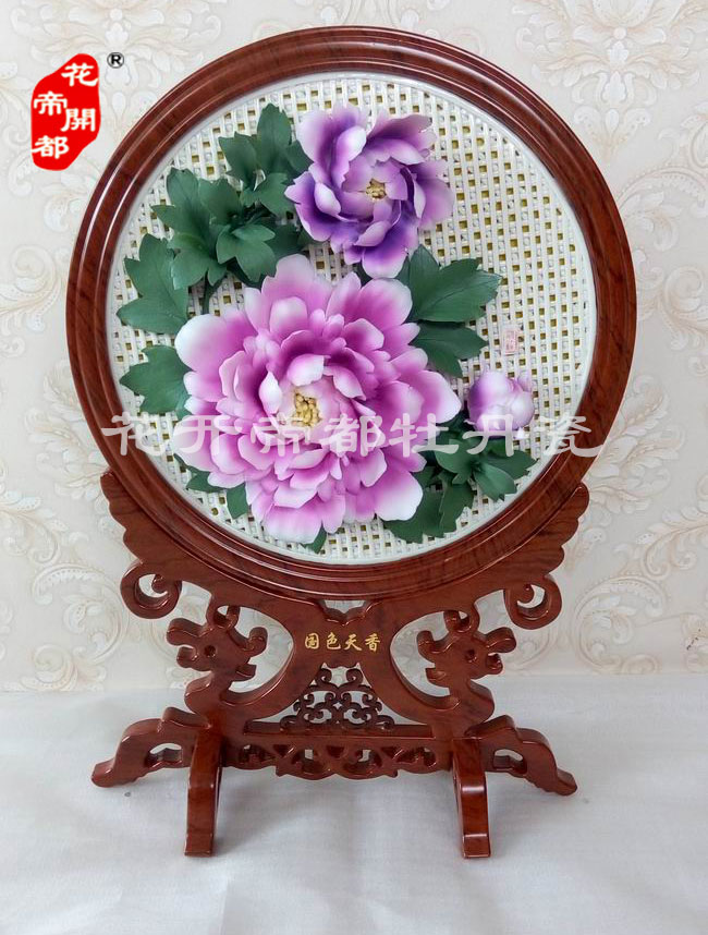 產品系列主要包括:牡丹瓷花盤、牡丹瓷屏風、牡丹瓷盆景、牡丹瓷壁掛和牡丹瓷鼎,形式多種多樣!每一件作品都是藝術的結晶,花、枝、葉均是手工捏制,造型逼真生動。