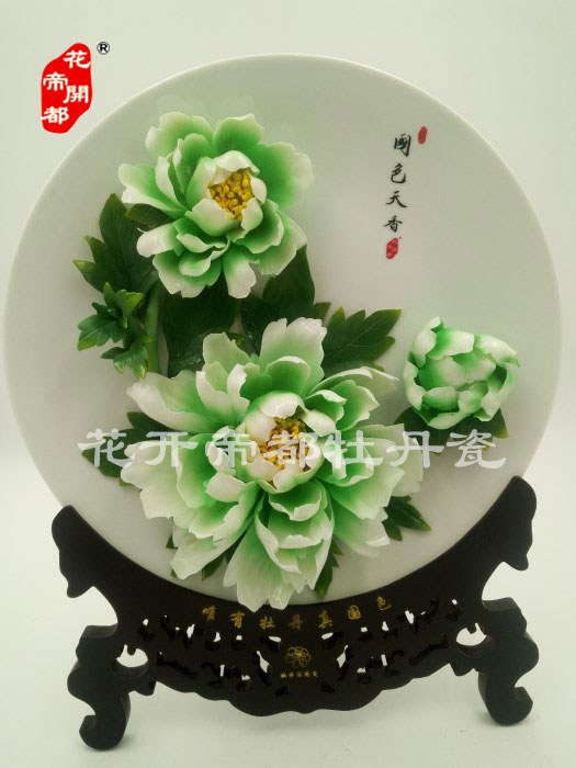 產品系列主要包括:牡丹瓷花盤、牡丹瓷屏風、牡丹瓷盆景、牡丹瓷壁掛和牡丹瓷鼎,形式多種多樣!每一件作品都是藝術的結晶,花、枝、葉均是手工捏制,造型逼真生動。