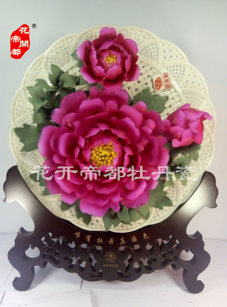 產品系列主要包括:牡丹瓷花盤、牡丹瓷屏風、牡丹瓷盆景、牡丹瓷壁掛和牡丹瓷鼎,形式多種多樣!每一件作品都是藝術的結晶,花、枝、葉均是手工捏制,造型逼真生動。