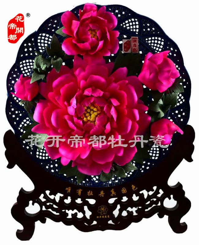 產品系列主要包括:牡丹瓷花盤、牡丹瓷屏風、牡丹瓷盆景、牡丹瓷壁掛和牡丹瓷鼎,形式多種多樣!每一件作品都是藝術的結晶,花、枝、葉均是手工捏制,造型逼真生動。