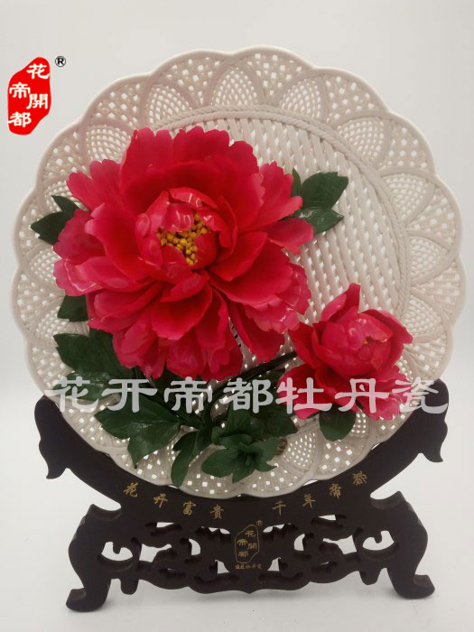 產(chǎn)品系列主要包括:牡丹瓷花盤、牡丹瓷屏風(fēng)、牡丹瓷盆景、牡丹瓷壁掛和牡丹瓷鼎,形式多種多樣!每一件作品都是藝術(shù)的結(jié)晶,花、枝、葉均是手工捏制,造型逼真生動(dòng)。