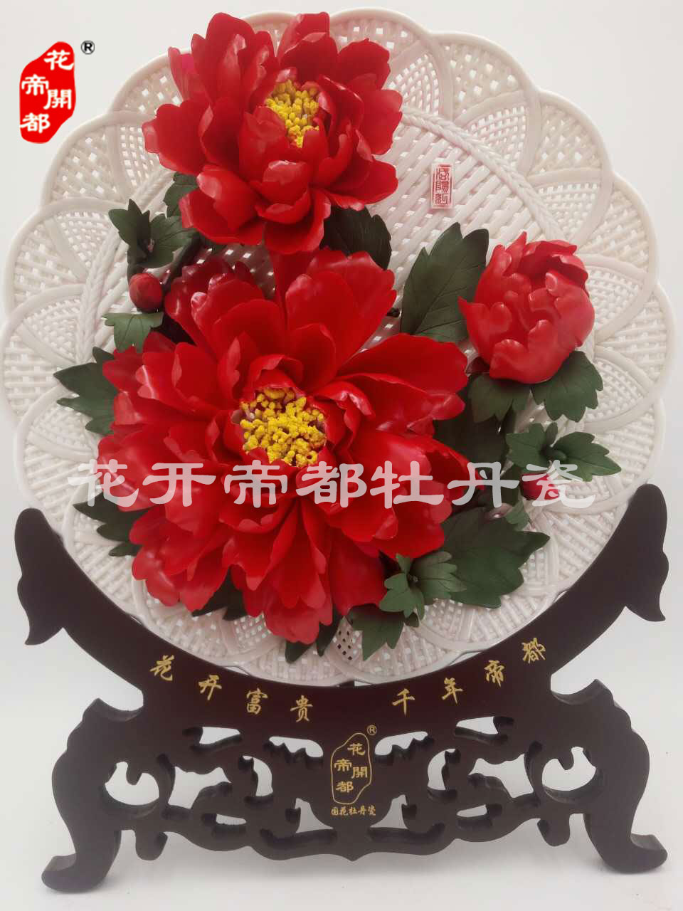 產(chǎn)品系列主要包括:牡丹瓷花盤、牡丹瓷屏風(fēng)、牡丹瓷盆景、牡丹瓷壁掛和牡丹瓷鼎,形式多種多樣!每一件作品都是藝術(shù)的結(jié)晶,花、枝、葉均是手工捏制,造型逼真生動(dòng)。