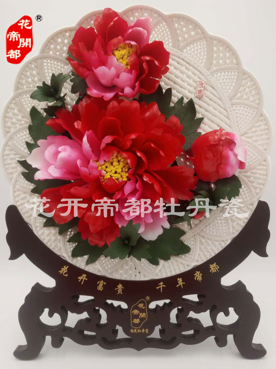 產品系列主要包括:牡丹瓷花盤、牡丹瓷屏風、牡丹瓷盆景、牡丹瓷壁掛和牡丹瓷鼎,形式多種多樣!每一件作品都是藝術的結晶,花、枝、葉均是手工捏制,造型逼真生動。