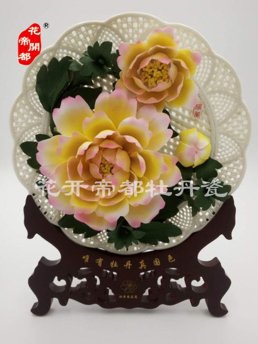 產品系列主要包括:牡丹瓷花盤、牡丹瓷屏風、牡丹瓷盆景、牡丹瓷壁掛和牡丹瓷鼎,形式多種多樣!每一件作品都是藝術的結晶,花、枝、葉均是手工捏制,造型逼真生動。